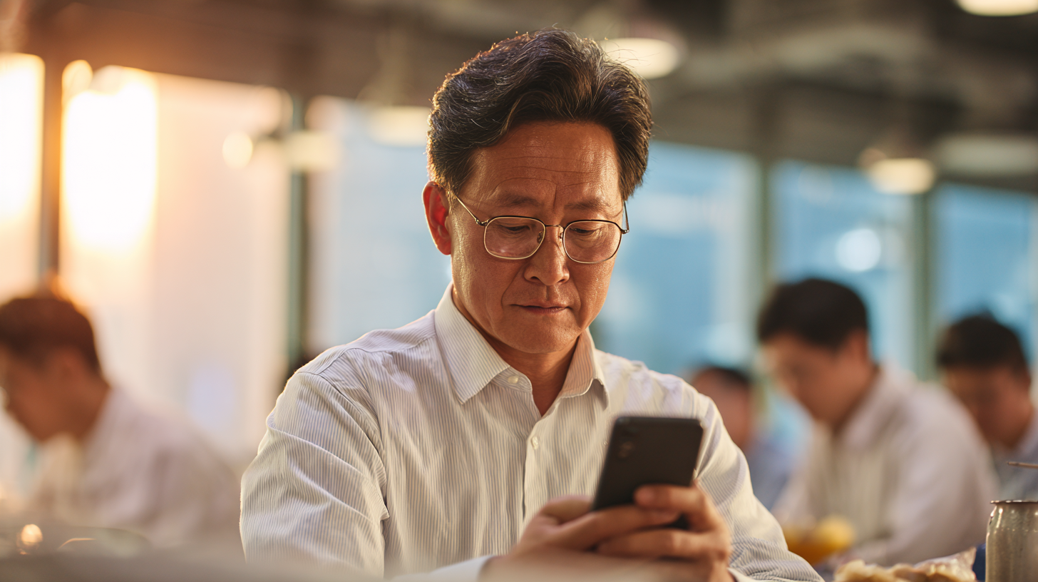 회사 구내식당에서 점심 먹다가 아빠가 갑자기 폰을 꺼내들었다.