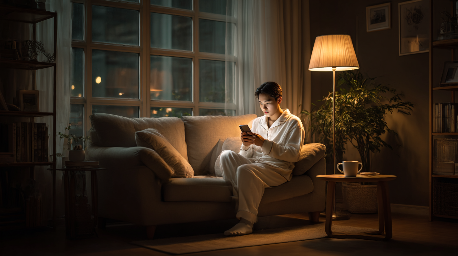 새벽 3시, 침대에서 손정의의 700조원 투자 뉴스를 보며 놀라는 평범한 직장인의 모습