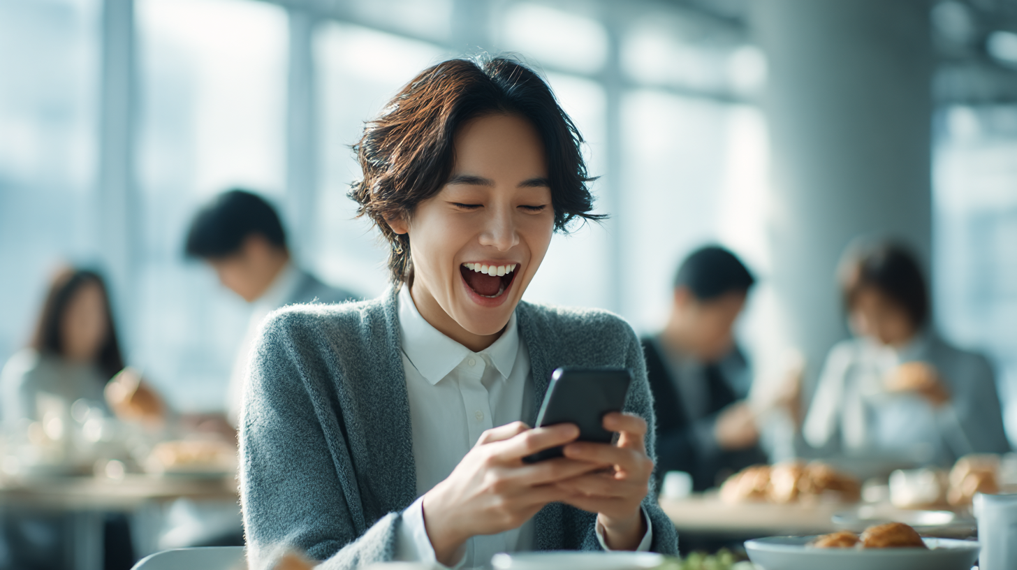 코스피 5200 돌파 소식에 회사 구내식당에서 환호하는 직장인의 모습