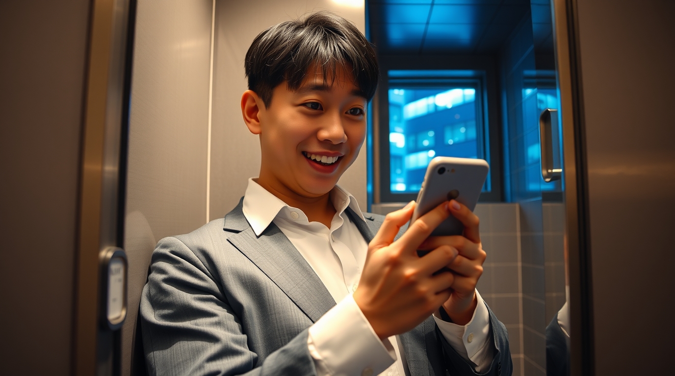 화장실 칸에 앉아서 스마트폰을 확인하는 직장인의 일상.